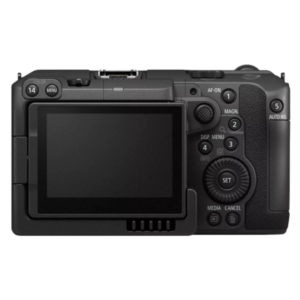 Die EOS C50 bleibt klein (ca. 142 × 88 × 95 mm, ca. 670 g Body‑Only), ist aber klar auf Produktion ausgelegt: HDMI Type‑A, USB‑C (USB 3.2 Gen2), Timecode In/Out (DIN 1.0/2.3) und über die Handle‑Unit 2× XLR plus 3,5‑mm Audio.