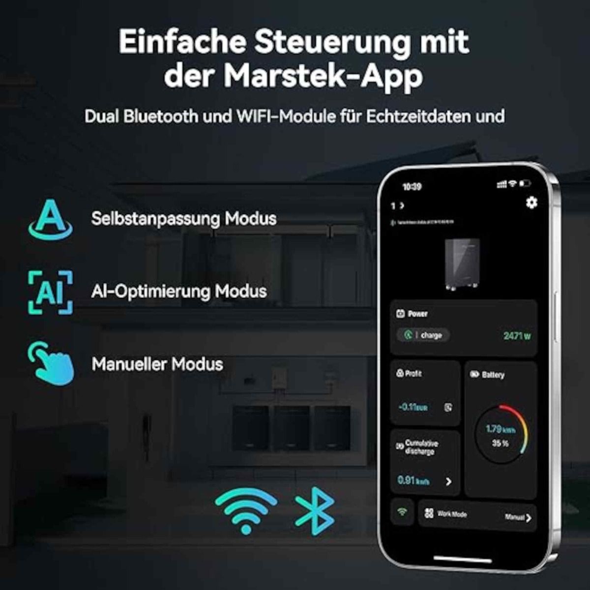- Notstromfähigkeit: bis zu 2,5 kW Off‑Grid‑Ausgang bei Stromausfall