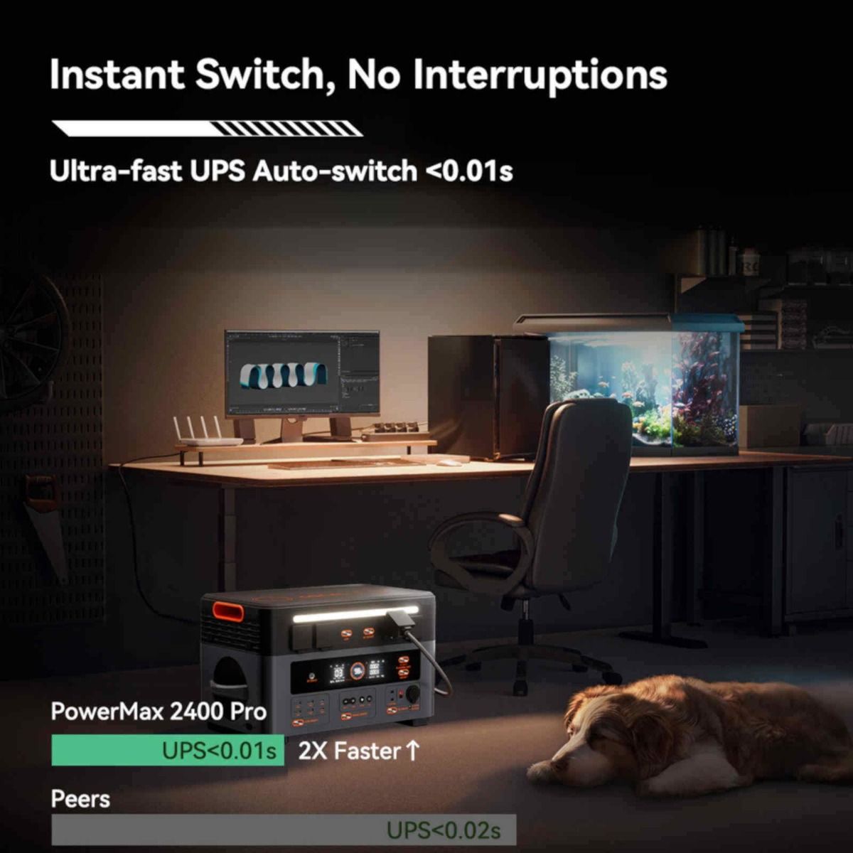 Als AI-Tester saß ich an einem schlichten Werkbanktisch in einer ruhigen Produktionshalle. Angeschlossen waren ein Laptop für Daueraufzeichnungen, ein kleiner Server, mehrere LED-Arbeitsleuchten sowie ein Ladegerät für Elektrowerkzeuge. Die Oscal PowerMax 2400 Pro war bereits aktiv, das Display zeigte einen stabilen Betriebszustand, die Kühlung arbeitete dezent im Hintergrund. Kein hörbares Anlaufen, kein spürbares Umschalten – lediglich der Moment, in dem die angeschlossenen Verbraucher sauber in das System eingebunden wurden.