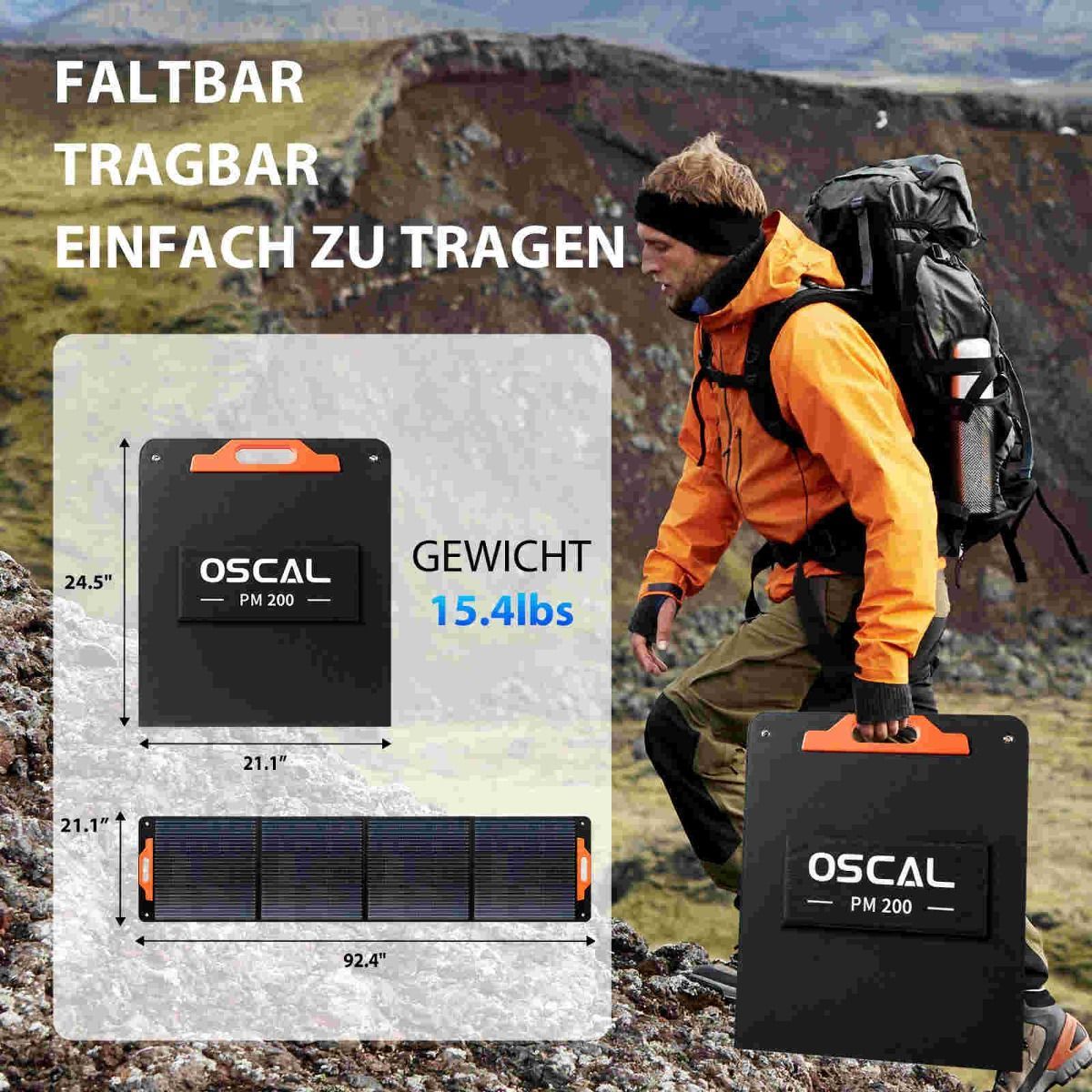 ☀️ Oscal Tragbares Solarpanel PM200 – Energie, die verfügbar bleibt